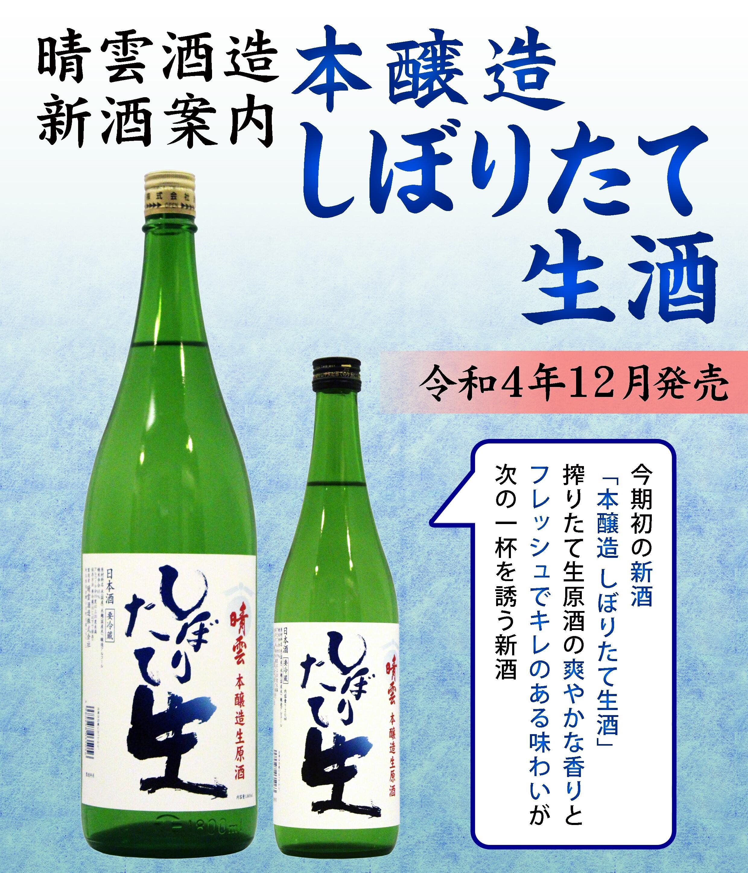 お待たせいたしました。 今季の新酒が出来上がりました。 12月1日順次出荷及び売店で販売となります。 ご購入はネットショップでも可能ですのでご利用ください。 商品詳細は、こちら